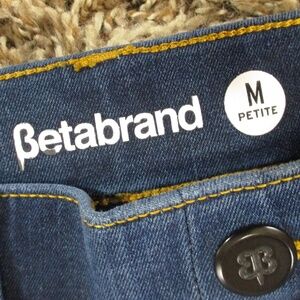 These Betabrand jeans offer the perfect blend of comfort and style. Designed for petite women, the medium size ensures a flattering fit. The bootcut silhouette and 4-pocket design provide a classic look, while the pull-on style and stretchy denim offer ultimate comfort. Ideal for everyday wear, these jeans are both fashionable and functional.