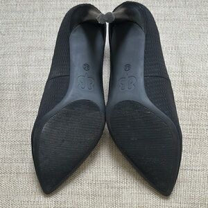 Selling a pair of Betabrand Mile Marker shoes in black. These shoes feature a pointed toe design and a comfortable, memory foam-lined interior. They are made with a lightweight, breathable air mesh upper and a thermoplastic rubber outsole for flexibility. The shoes are fully machine washable.