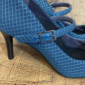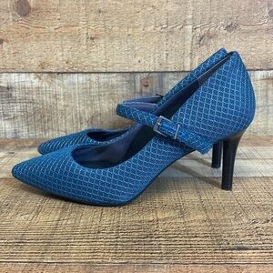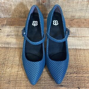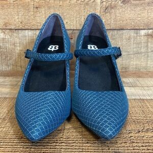 Betabrand Mile Marker Mary Jane Pumps Heels Womens 7.5 Blue Pointed Toe Office