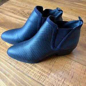 Stylish navy booties with a sleek pattern. Perfect for elevating any outfit.