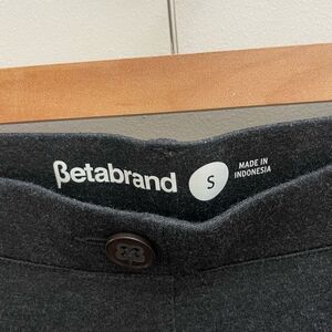 Classic comfortable stretch Betabrand straight leg pants. Faux pockets in the front and back. Size small. Good preowned condition. No flaws, stains or holes. See all photos for details and measurements.