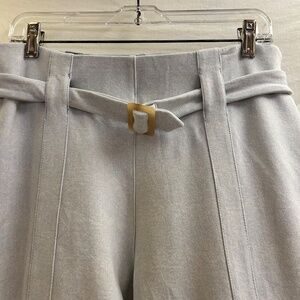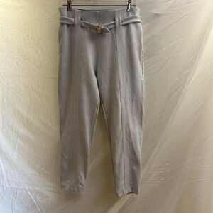 * Pants: Size L Petite, tapered ankle, belted waist detail with buckle, back patch pockets, comfortable pull-on style.