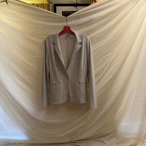 Polished comfort! This Betabrand two-piece set includes a tailored blazer and matching pants in a soft gray ponte knit. Perfect for work, travel, or dressing up without sacrificing comfort.