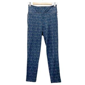 Betabrand Power Down Skinny Yoga Dress Pant Navy Damask Size SP Small Petite