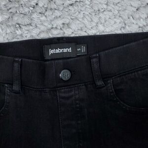 Women's Betabrand Skinny Leg 4-pocket yoga denim pull on jeans in black. Pants were removed from the bag to inspect, but never worn. Please note, there is fading throughout. Women's size small, real measurements shown in photos with jeans laid flat: