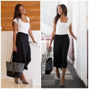 Betabrand The Sassiest Pants Women's Size Small Black Skirt Wrap Overlay Stretch Ponte in great pre-owned condition! Please see photos for approximate measurements.