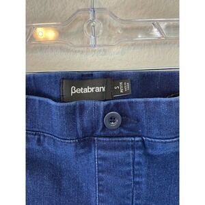Betabrand Women’s Elastic Waist Straight Leg Pull On Denim Blue Jeans Sz SP