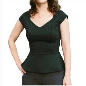Betabrand Work It Peplum Top Dark Green Plus Size 2X