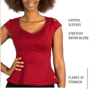 Betabrand Work-It Peplum Cap Sleeve Top in Red Size Medium