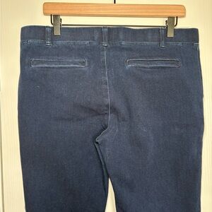 Betabrand Dress Pant Yoga Pants in the boot-cut style, dark indigo denim color. Women’s size XL. Super comfortable stretch blend with the look of dress pants and the feel of yoga pants.