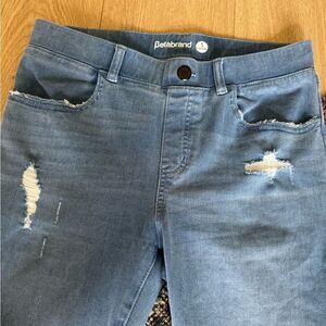 Betabrand pull on jeans with light distressing