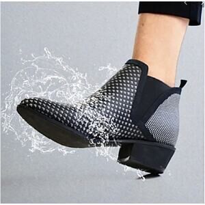 Features and description: tennis western ankle boots; waterproof; chelsea pull on; birdseye diamond pattern; black