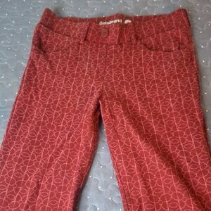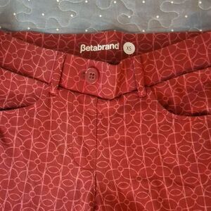 Stylish red pants with a unique pattern. Perfect for any occasion.