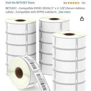Betckey Compatible Dymo 30336 (1”x21/8”) Return Address Labels. Compatible with Dymo 450, 4XL, Zebra desktop printers. These are just the left overs and I don’t need them anymore. There are 13 rolls. For 16 rolls, Amazon selling them for $26. Price is firm.