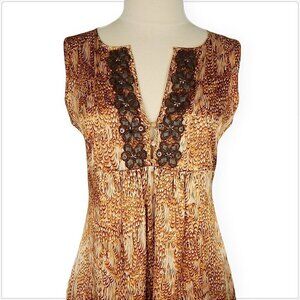 Beth Bowley Anthropologie Animal Print Silk Empire Brushed Copper Beaded Dress 4