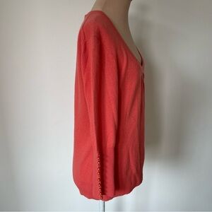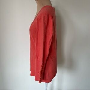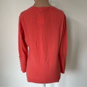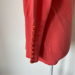 Beth Bowley Coral Cashmere Pearl Button Cuff U-Neck Sweater NWT Size Large $220