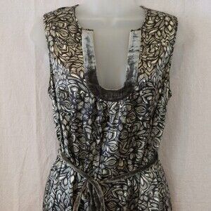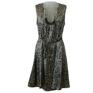 Beth Bowley Floral Print 100% Silk Shift Velvet Tie Waist Dress 10