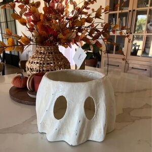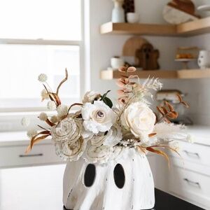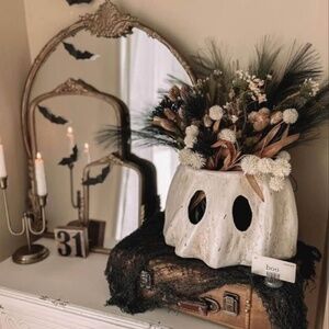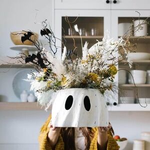 It is sold out everywhere. I was planning to decorate with 2 of them on my bookcases, but ended up just using 1 ghost bucket so I'm selling the extra one. Hoping to get close to what I originally paid for it, which was over $100 with shipping. See first few pics for decoration inspiration. The last 4 pics are of the actual bucket. It has been kept stored in a box so there's nothing wrong with it. You can put faux florals in it for Halloween or fall decor. The bucket is made of paper mache type material. It will be shipped in a box with craft paper stuffing to protect it in shipping.