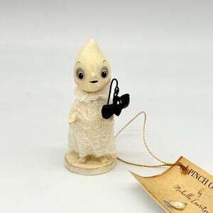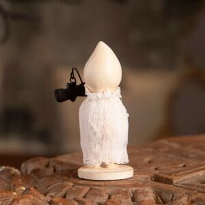 Add a dash of whimsy to your Halloween decor with Going Batty Ghost by Michelle Lauritsen! This charming little ghost, draped in a soft gauze overlay, is dressed to impress with a cute crepe collar. In one arm, he holds a delicate staff with a bat dangling from the end, ready to bring some spooky fun to your celebrations. Perfect for adding a playful and vintage touch to your Halloween display!