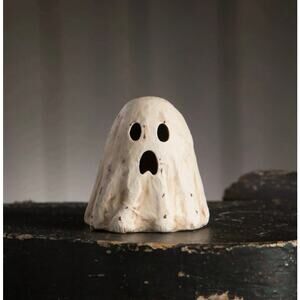 These adorable ghosts are made out of paper mache and are the perfect addition to any Halloween decor. Can be used with a battery operated votive. -**Votives not included.**