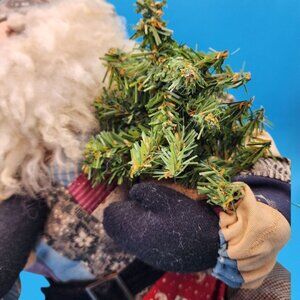 • Quilted patchwork Santa holding teddy bear & small Christmas tree
