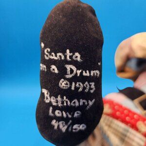 Bethany Lowe Santa on a Drum 1993 Signed 48/150 Quilt Teddy Bear Christmas Decor