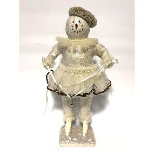 Bethany Lowe Snowman Christmas Snow Lady Tutu Pearls Holding Bell Garland 16”