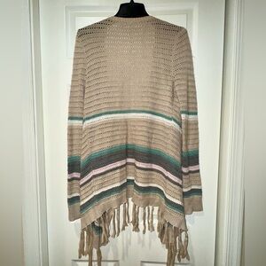 Bethany Mota Striped Tan w Green/pink stripe Women's cardigan. Size Small. VGUC