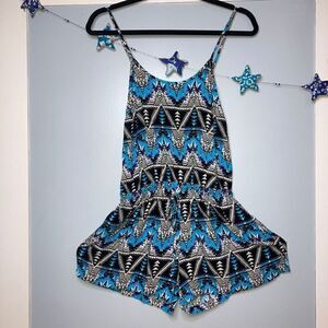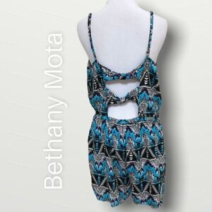 Bethany Mota, Bohemia Sleeveless Shorts Romper, Drawstring Waist, Blue Size XS