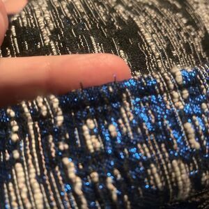 Mini skirt pleated, metallic blue with white back zipper has some loose threads measurements 24x16” (1541)