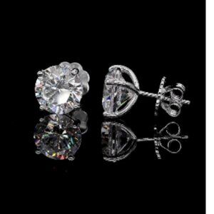 Each earring features a 2 carat round Diamond Crystalline gem, precision cut and polished on a real diamond wheel for outrageous fire and clarity. The low-profile martini basket sits neatly on the lobe while our No Droop™ earring backs give instant lift and stability, so your studs never tilt forward.