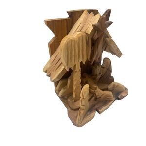 Bethlehem Natural Olive Wood Nativity Scene with Hand Carved Figures