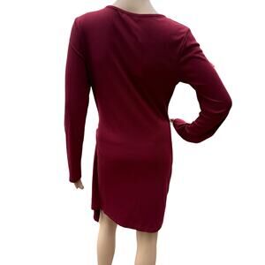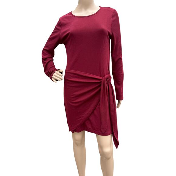 This stylish and comfortable Betianro mini dress is in new with tags, excellent condition. It's a solid, ribbed pullover dress with long raglan sleeves and a crew neck. The wrap-style ruched front gathers at the waist, where a tie-waist detail adds both a design element and a custom fit.