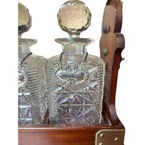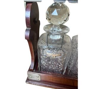 Betjemann's Tantalus Antique Liquor Cabinet 3 Decanter Set Prism Stoppers Silver