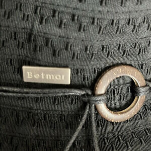 Betmar NY Coconut Ring Safari Sun Hat in Black - One Size Fits Most. Excellent pre-owned condition. Lightweight, packable, 50+ UPF rating, round crown, 4" wide brim, coconut ring trim. Made from a flexible poly braid and features a beach-inspired cord hatband with a coconut ring and bead accents.