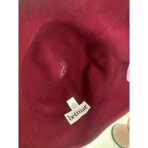 Betmar New York Women’s Hat Red Wool Felt Cloche Hat Burgundy with Feather
