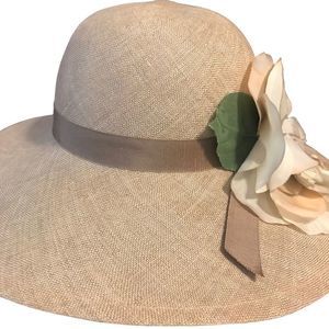 Betmar Summer Hat Tan Flower& Ribbon Size 7”