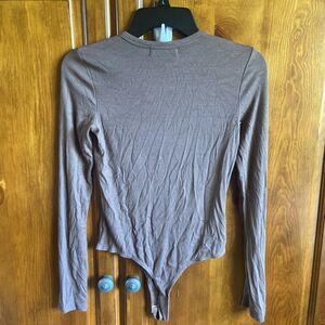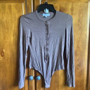 Betro Simone Brown Bodysuit Ribbed Henley Stretch Button-Up Soft Snap Size Small