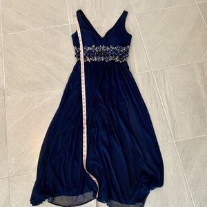 Betsey Adam Navy Blue Gown With Illusion Waist Dress Size 6 Petite