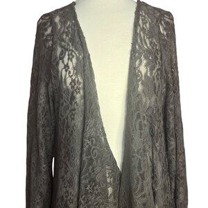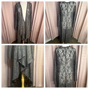 Betsey Boo! 3X Gray Long Sleeve Open Waterfall Front Sheer Lace Cardigan Duster