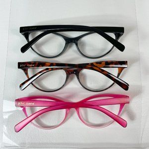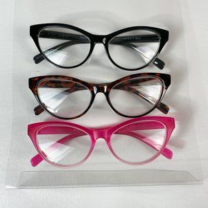 Betsey Johnson +1.50 Reading Glasses Pink Tortoise Black 3 Pair