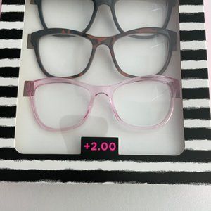 Betsey Johnson +2.00 Reading Glasses 3 Pair Pink