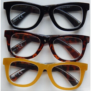 Betsey Johnson +2.00 Reading Glasses Readers 3 Pack Set Square Mustard Tortoise