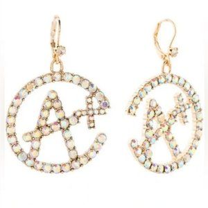 Betsey Johnson A+ School Collection Drop Earrings Pave Iridescent crystal and Goldtone. NEW WITH TAGS!