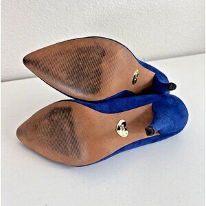 Add a bold pop of color and vintage glam to your look with these gorgeous Betsey Johnson blue suede heels. Featuring a sleek pointed toe, soft suede upper, and leopard print accent and brand’s signature these heels bring personality to any outfit — perfect for parties, date nights, or formal events.