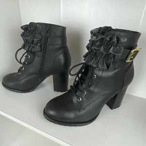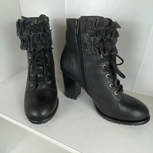 Betsey Johnson Alleexis Leather Lace Up Ankle Boots 7.5 Black