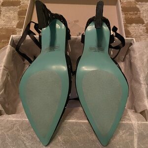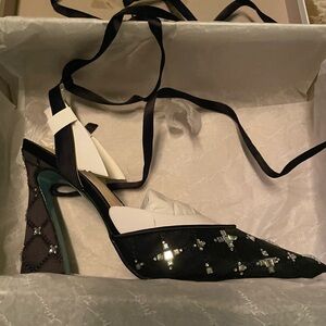 Betsey Johnson heel in black. Size 8.5. New in box, never worn and with replacement stones. Bought for a wedding shoe possibility and went with another pair.