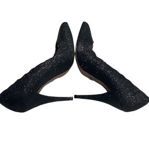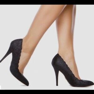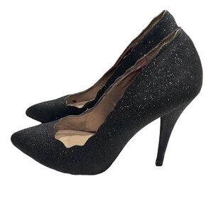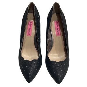 Betsey Johnson Avery Scalloped Edge Black Glitter Pumps SZ 7.5