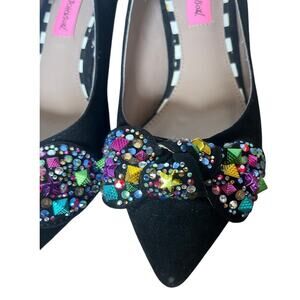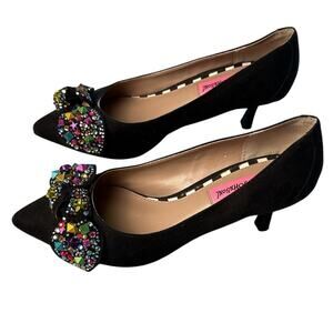 Betsey Johnson Axle Jeweled Bow-Tie Kitten-Heel Pumps Size 5.5