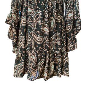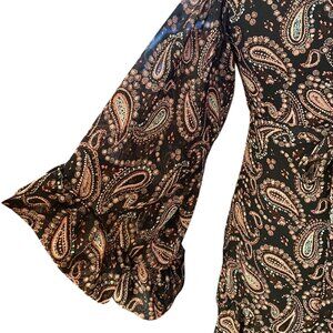Betsey Johnson Babydoll Flare Bell Sleeve Paisley Tiered Mini Dress Whimsigoth Dark Fairy Grunge Boho-2